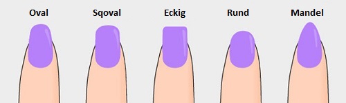 Anders als die Länge, kann die perfekte Form genau bestimmt werden. Es ist etwas zwischen "eckig" und "sqoval" (aus dem Englischen eine Verbindung zwischen "sqare" und "oval"). Das bedeutet, dass eine eckige Grundform vorne ganz wenig gerundet ist und die Ecken leicht abgefeilt sind. Solche fast-eckigen Nägel geben, wenn angemessen angestrichen, die Assoziation von hoher Femininität, Selbstbewusstsein was das Aussehen angeht, Begierde nach Aufmerksamkeit und vielleicht noch etwas Naivität... Das ist genau das, was wir von unserer Bimbo erwarten.